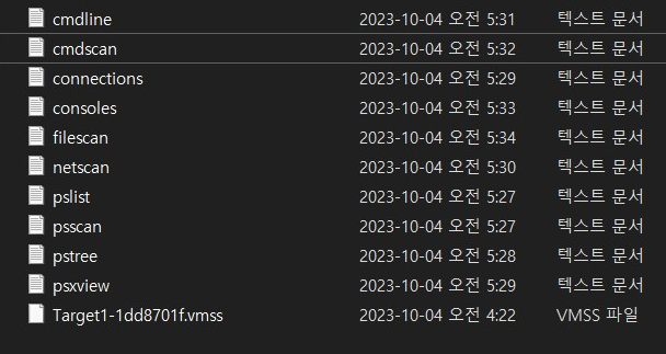 - psscan : offset (=메모리 덤프 파일의 어떤 위치에 존재하는지) 순서로 출력, 숨긴 프로세스를 볼 수 있음.