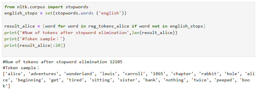 - 토큰 수가 많이 줄어든 것을 확인할 수 있음. 2자이하의 글자들이 모두 제외되었고, 부호가 사라졌음.