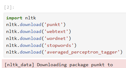nltk를 import한후, nltk.download를 사용해 아래 라이브러리들을 다운로드하였음.