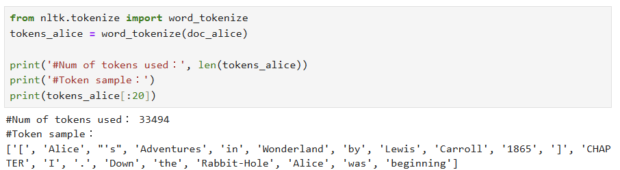 -> 내용을 확인하고 NLTK를 이용해 토큰화함.