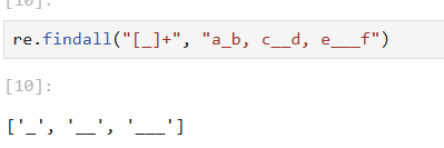 ex) 문자열에서 _가 하번 이상 반복된 부분을 찾고 싶다면 아래와 같이 사용 가능하다.