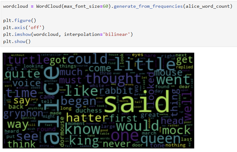 - 빈도가 높은 단어는 크게, 낮은 단어는 작게 보여줌으로써 한눈에 전체적인 현황을 파악할 수 있게 함.