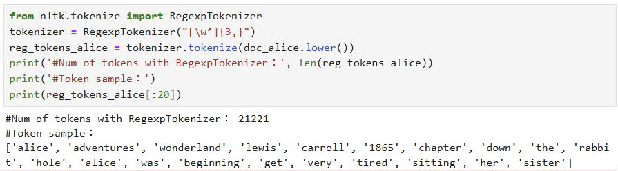 -> 정규표현식을 이용해 토큰화.