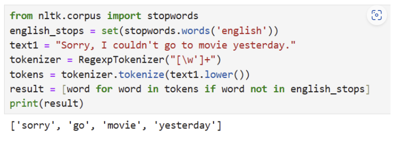 - 특정 단어를 지정해 불용어 사전을 만들고, 불용어 삭제 가능함.
